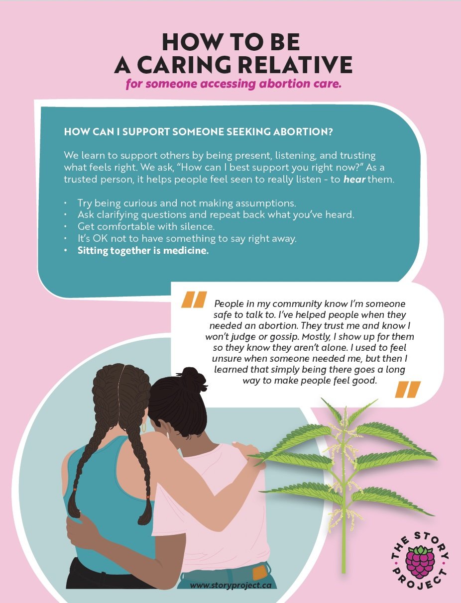 How to Be a Caring Relative, is designed for partners, family members, friends, and community members, offering guidance on how to provide meaningful, culturally grounded, and respectful support to someone accessing abortion care.